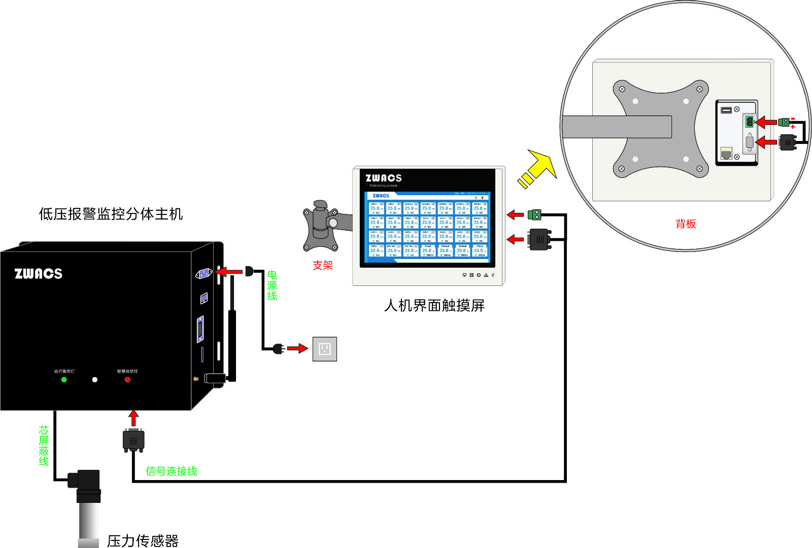 Z2型云监控主机,与触屏连接方法:(标配6芯的信号屏蔽线,使用DB9接线头分别连接主机端接口与触摸屏端接口端,具体参考线路图)